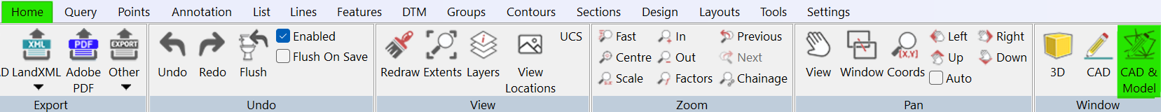 Commit: This option allows you to commit points to the CAD backcloth, however, you will not be able to turn the newly created CAD points on and off as you wish. The CAD points can be removed by going to the Home tab, selecting the CAD & Model option (see below) and deleting them using the Delete function under the Edit tab.