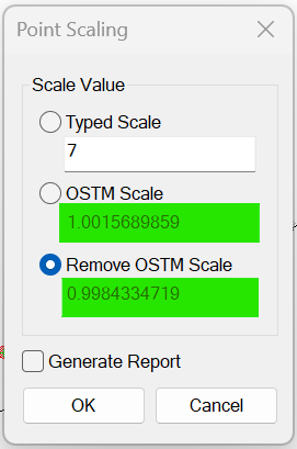 All - The All function allows you to scale all the points in a project to a point of origin. In the same option box, the OSTM scale can be added or removed if required.