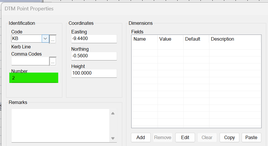 Don't Model (,X) - Using this function will allow you to add an 'X' comma code to a point. This will ensure that the point is not modelled, which can be useful if you want to exclude points when creating a DTM.