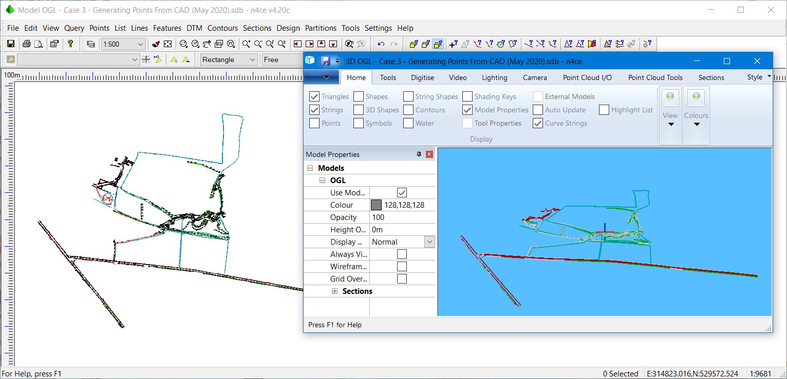 Since AutoCAD DWG/DXF are common currency in our business, one of the issues you may be faced with is generating points from CAD so that they can be modelled. You may be required to create points for setting out, or for generating volumes given the design or simply to agree on muck shift quantities with a third party. This is a non-trivial exercise and time should be given to filter out the correct information, without data overload! If you are lucky this will already be in 3D so the process will be simplified, but it’s more likely that the information provided will be in 2D.